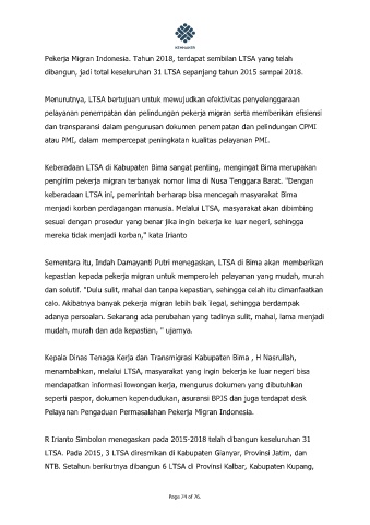 Pekerja Migran Indonesia. Tahun 2018, terdapat sembilan LTSA yang telah