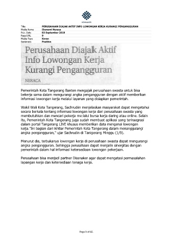 angka pengangguran," ujar Sachrudin di Tanigerang Minggu (1/9).