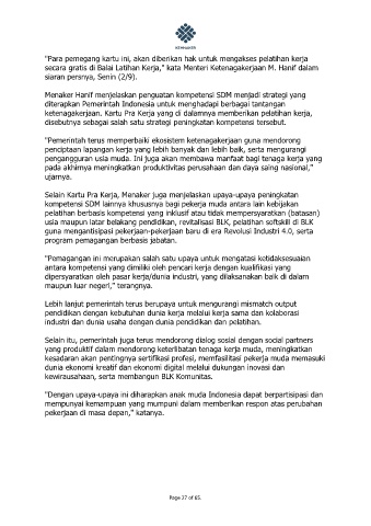 Selain Kartu Pra Kerja, Menaker juga menjelaskan upaya-upaya peningkatan