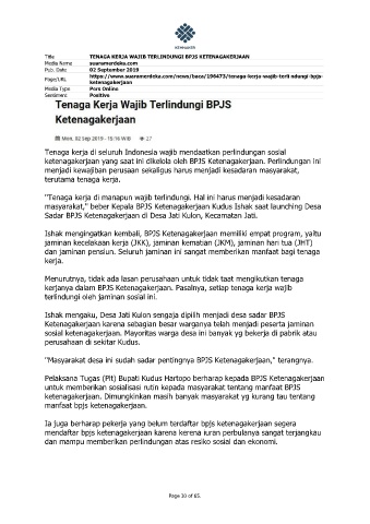 masyarakat,'' beber Kepala BPJS Ketenagakerjaan Kudus Ishak saat launching Desa