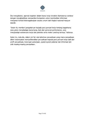 "Selain itu memberi pengetahuan kepada para pencari kerja tentang bagaimana