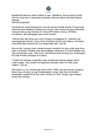 almarhumah dipenuhi selama bekerja di sana. Setidaknya, barang-barang pribadi