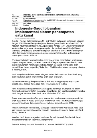 Title INDONESIA-SAUDI BICARAKAN IMPLEMENTASI SISTEM PENEMPATAN SATU KANAL
