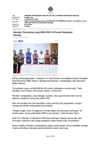 Title MENAKER: PERUSAHAAN YANG MILIKI PKB, 96 PERSEN PEKERJANYA BAHAGIA