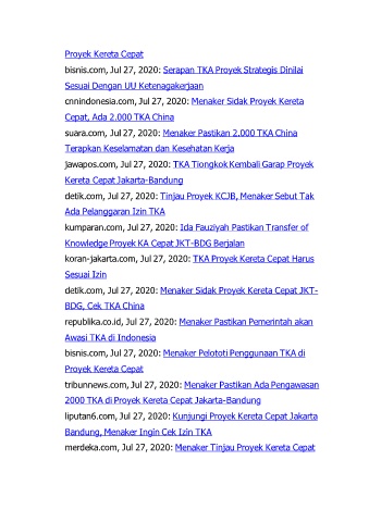 koran-jakarta.com, Jul 27, 2020: TKA Proyek Kereta Cepat Harus