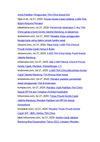 kompas.com, Jul 27, 2020: Menaker Ingin Pastikan TKA China
