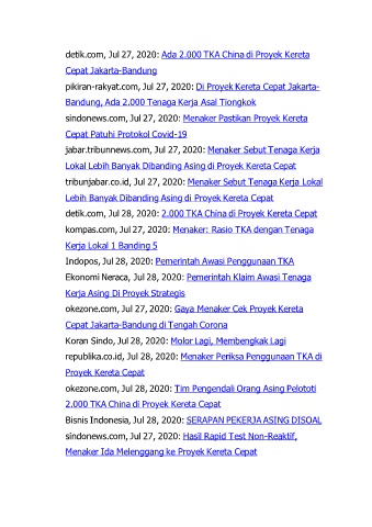 detik.com, Jul 27, 2020: Ada 2.000 TKA China di Proyek Kereta