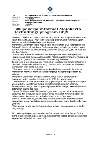 Title 500 PEKERJA INFORMAL MOJOKERTO TERLINDUNGI PROGRAM BPJS