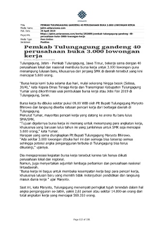 Title PEMKAB TULUNGAGUNG GANDENG 40 PERUSAHAAN BUKA 3.000 LOWONGAN KERJA