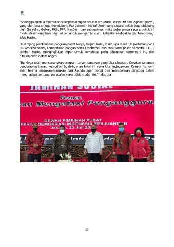 isu keadilan sosial, kemandirian pangan serta kesehatan, dan efektivitas pasar domestik. PDIP,