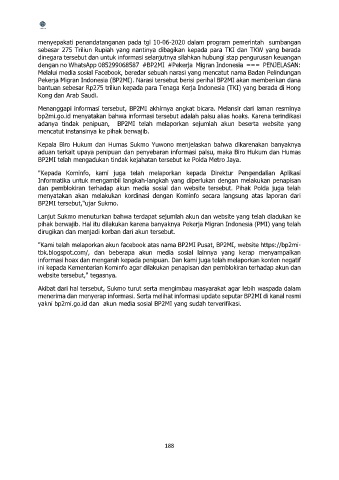 "Kami telah melaporkan akun facebook atas nama BP2MI Pusat, BP2MI, website https://bp2mi-
