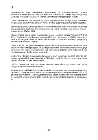 Sementara, Menteri BUMN Erick Thohir menyatakan komitmennya mempekerjakan penyandang