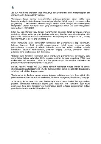 programming ," kata Menaker Ida saat mengisi Seminar Virtual bertajuk "Kiprah Perempuan