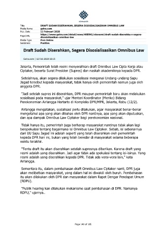 Title DRAFT SUDAH DISERAHKAN, SEGERA DISOSIALISASIKAN OMNIBUS LAW