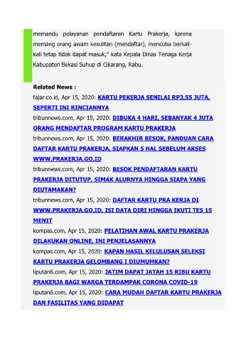 fajar.co.id, Apr 15, 2020: KARTU PEKERJA SENILAI RP3,55 JUTA,
