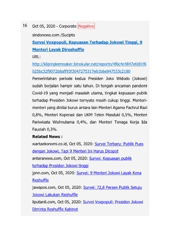 liputan6.com, Oct 05, 2020: Survei Voxpopuli: Presiden Jokowi