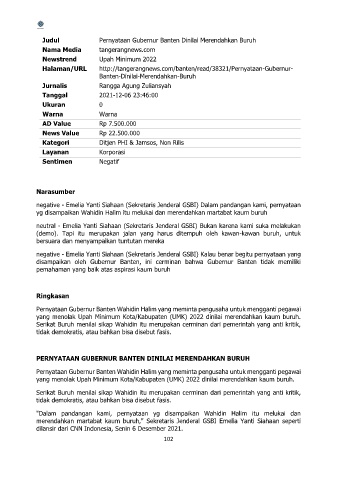 Judul Pernyataan Gubernur Banten Dinilai Merendahkan Buruh