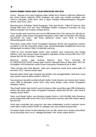 "Kami menolak upah murah dan nilai nominal UMK Jember tahun 2022 sebesar Rp2.355.662 per