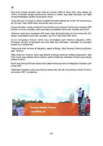 "Gubernur Jambi harus menaikkan UMP Jambi. Kalau dihitung kenaikan itu perlu harinya Rp 700.