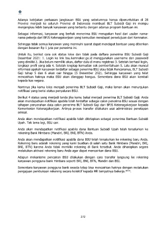 informasi apakah karyawan terdaftar sebagai penerima BSU atau tidak Rencananya, BLT Subsidi