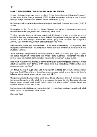 BUPATI TEMUI BURUH YANG DEMO TOLAK UMK DI JEMBER