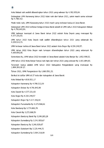UMK terbesar kelima di Jawa Barat tahun 2022 adalah Kota Bogor Rp 4.330.249,57.