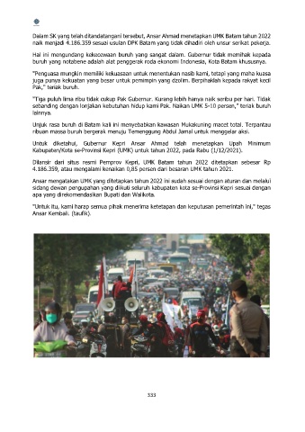 Dalam SK yang telah ditandatangani tersebut, Ansar Ahmad menetapkan UMK Batam tahun 2022