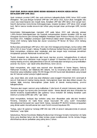 unjuk rasa besar-besaran dan mogok kerja. Kenaikan UMP dan UMK tahun 2022 sangat kecil.