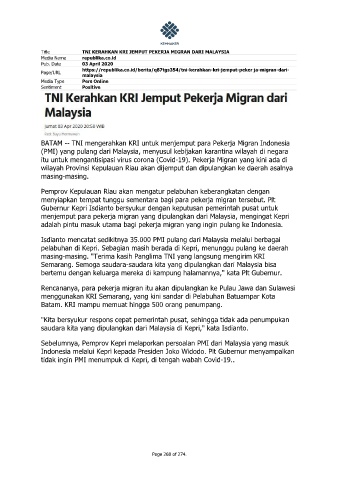 Title TNI KERAHKAN KRI JEMPUT PEKERJA MIGRAN DARI MALAYSIA
