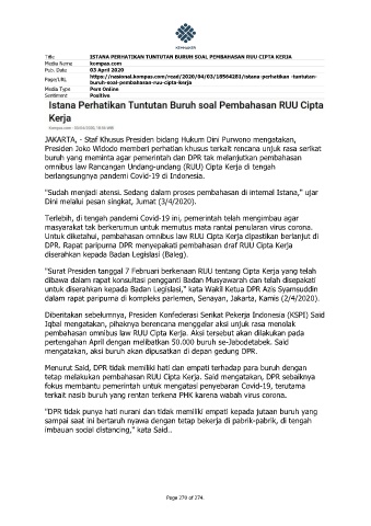 Title ISTANA PERHATIKAN TUNTUTAN BURUH SOAL PEMBAHASAN RUU CIPTA KERJA