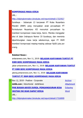 antaranews.com, Nov 11, 2019: BELASAN KARYAWAN TUNTUT PT