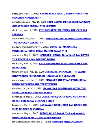 bisnis.com, May 11, 2020: KAPAN BATAS WAKTU PEMBAYARAN THR