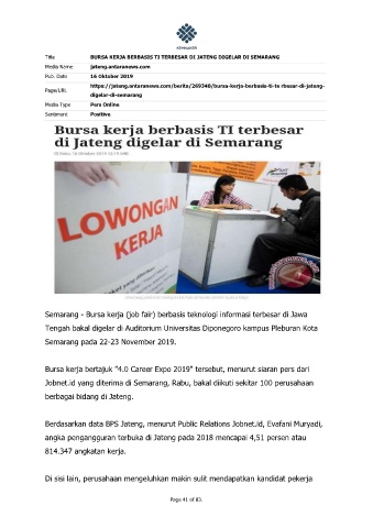 Title BURSA KERJA BERBASIS TI TERBESAR DI JATENG DIGELAR DI SEMARANG