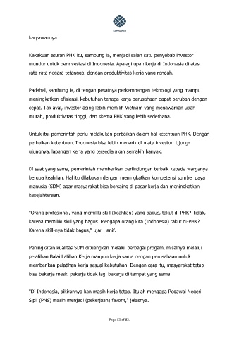 "Orang profesional, yang memiliki skill (keahlian) yang bagus, takut di-PHK? Tidak,