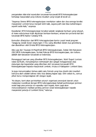 Menanggapi bantuan yang diberikan BPJS Ketenagakerjaan, Wakil Bupati Lombok