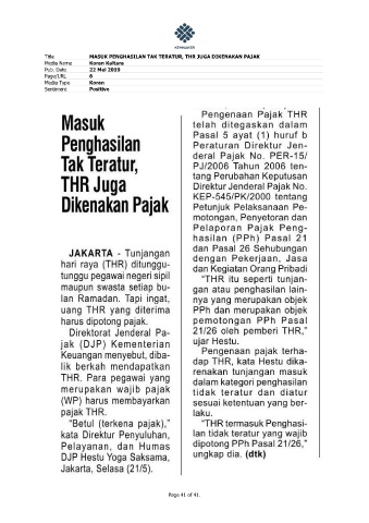 Title MASUK PENGHASILAN TAK TERATUR, THR JUGA DIKENAKAN PAJAK Media Name Koran Kaltara Pub. Date 22 Mei 2019 Page/URL 6 Media Type Koran Sentiment Positive Page 41 of 41.