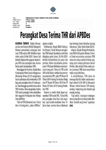 Title PERANGKAT DESA TERIMA THR DARI APBDES Media Name Tribun Jogja Pub. Date 22 Mei 2019 Page/URL 4 Media Type Koran Sentiment Positive Page 74 of 74.