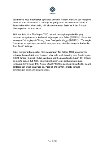 Tasini ke Arab dibantu oleh A. Sedangkan, pengurusan visa korban dilakukan F.