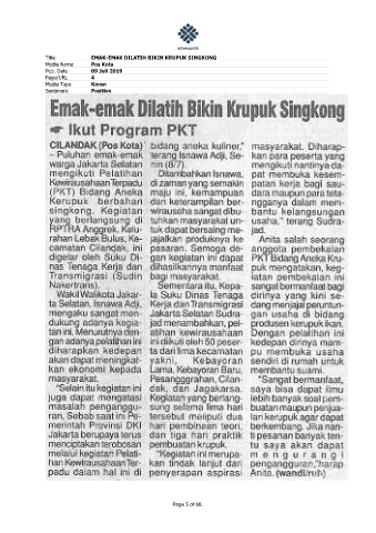 Title EMAK-EMAK DILATIH BIKIN KRUPUK SINGKONG Media Name Pos Kota Pub. Date 09 Juli 2019 Page/URL 4 Media Type Koran Sentiment Positive Page 5 of 68.