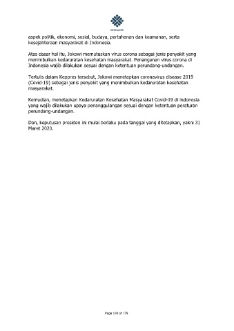 Kemudian, menetapkan Kedaruratan Kesehatan Masyarakat Covid-19 di lndonesia