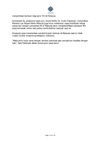Faizasyah juga menekankan pendistribusian bantuan di Malaysia saat ini tidak