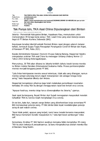 Title TAK PUNYA IZIN, TKA ASAL CHINA DIPULANGKAN DARI BINTAN