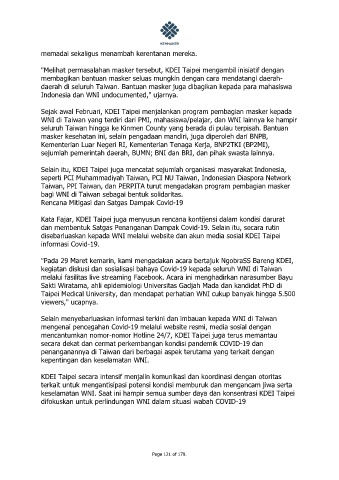 Selain menyebarluaskan informasi terkini dan imbauan kepada WNI di Taiwan