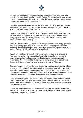 pekerja, Kemnaker hadir melalui Posko K3 Corona. Dengan posko ini, para pekerja