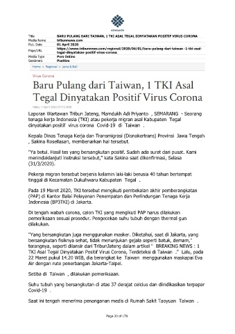 TKI Asal Tegal Dinyatakan Positif Virus Corona, Terdeteksi di Taiwan ." Lalu, pada