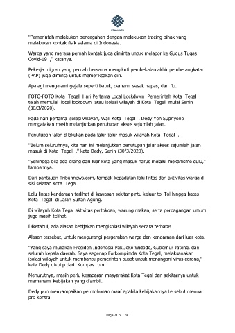 FOTO-FOTO Kota Tegal Hari Pertama Local Lockdown Pemerintah Kota Tegal