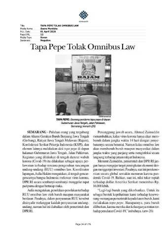 Title TAPA PEPE TOLAK OMNIBUS LAW Media Name Suara Merdeka Pub. Date 01 April 2020 Page/URL 12 Media Type Koran Sentiment Negative Page 24 of 179.