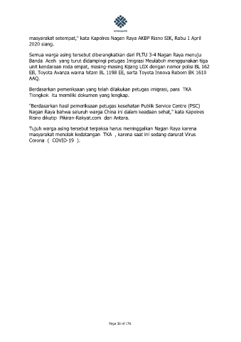 Nagan Raya bahwa seluruh warga China ini dalam keadaan sehat," kata Kapolres