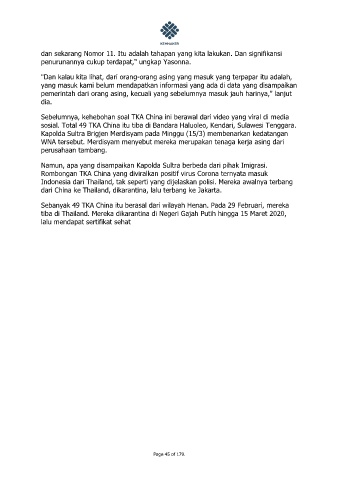 sosial. Total 49 TKA China itu tiba di Bandara Haluoleo, Kendari, Sulawesi Tenggara.