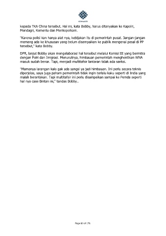 kepada TKA China tersebut. Hal ini, kata Bobby, harus ditanyakan ke Kapolri,